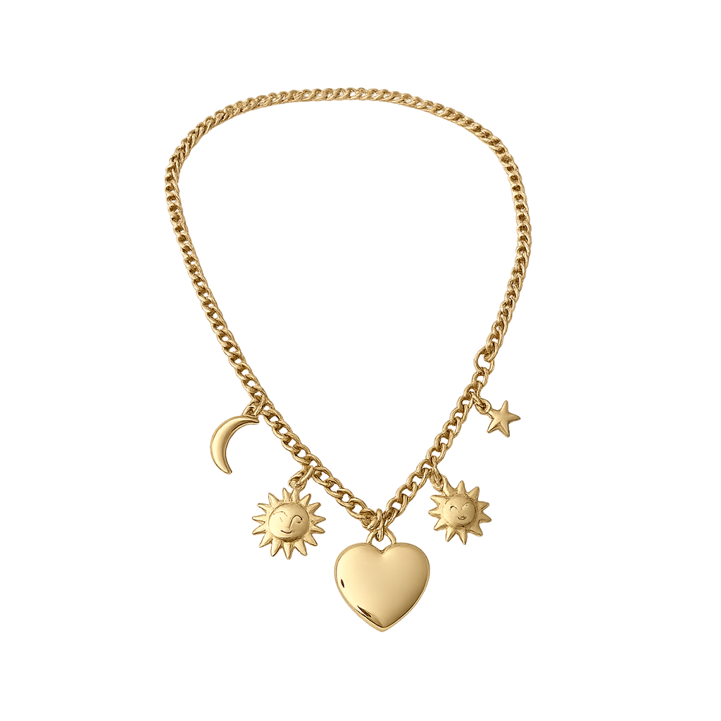 Collar de Acero Inoxidable combinado con charms de corazon, soles, luna y estrella.