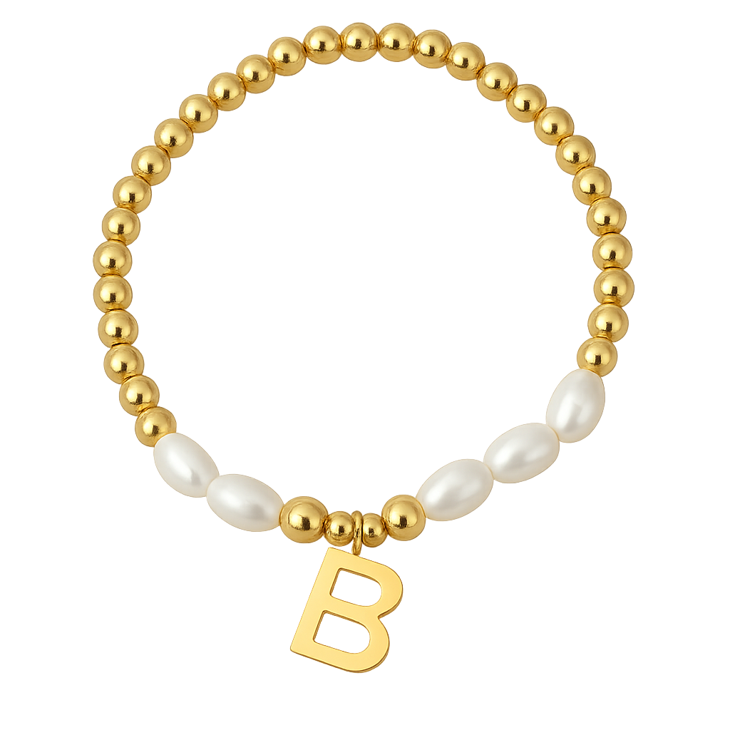 Pulsera Perlas y Cuentas Inicial Acero